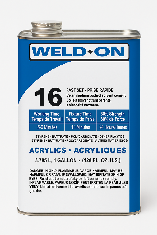 GENERAL DESCRIPTION Weld-On® 16 is a medium-bodied, clear solvent-type acrylic cement with very high strength. The fast curing time means some par...